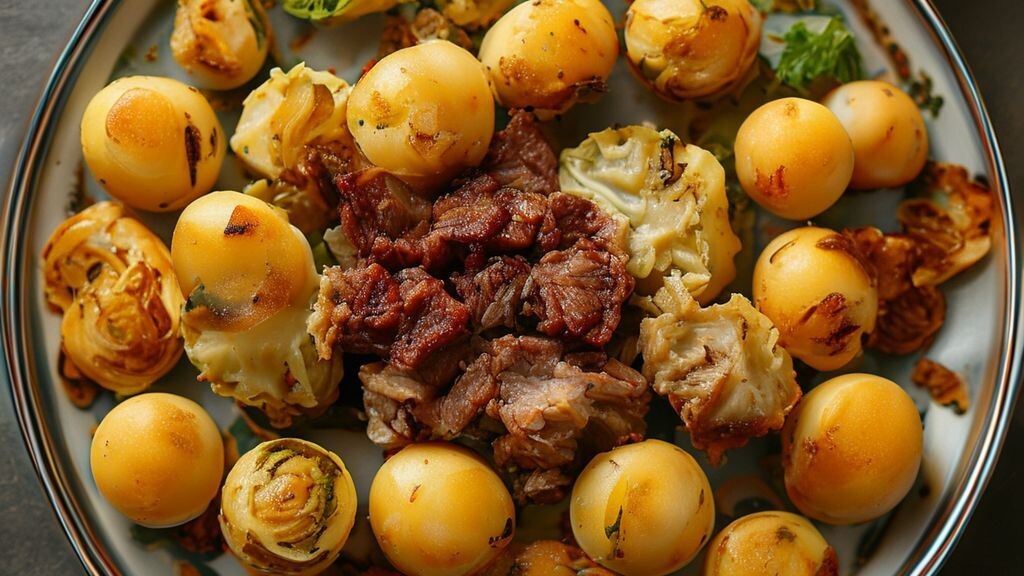 Жареная свинина с галушками и капустой – это сытное и ароматное блюдо, которое перенесет вас в атмосферу домашнего уюта и традиционной кухни. Сочетание нежного, запеченного до золотистой корочки мяса, воздушных картофельных галушек и пикантной квашеной капусты создает поистине незабываемый гастрономический опыт. Это блюдо идеально подходит для семейного ужина или праздничного стола, радуя своим насыщенным вкусом и аппетитным видом.