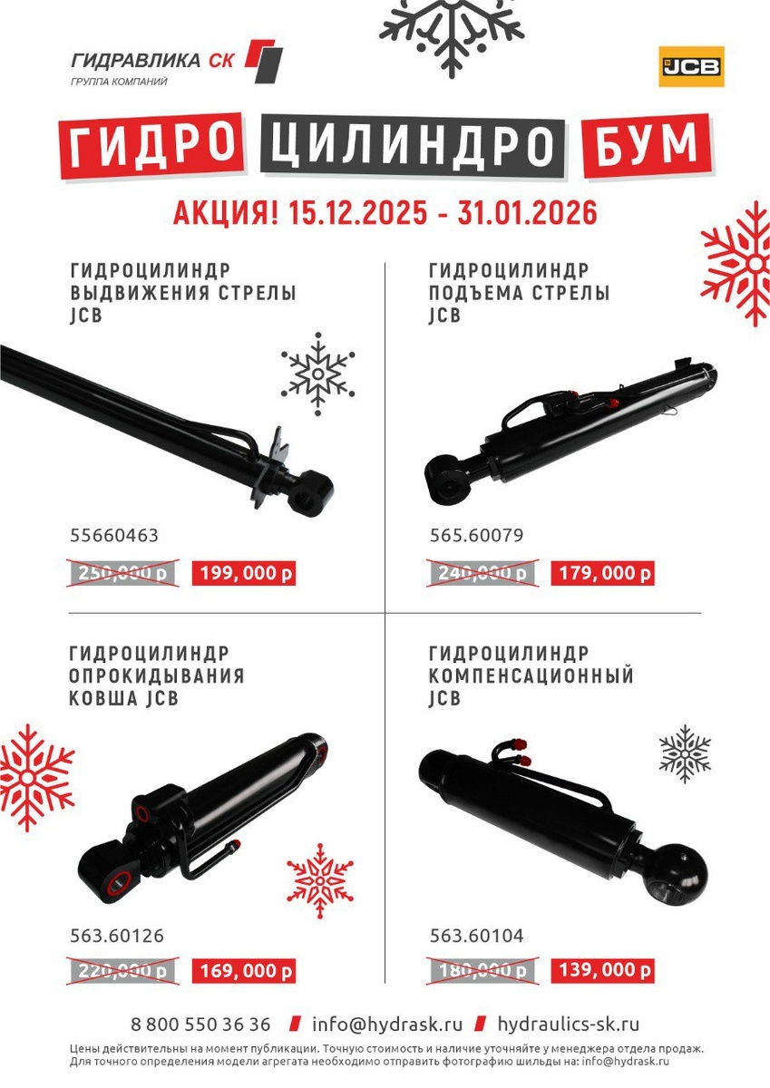 Вот мы с вами и в 2026 году 📅 Мы, конечно же, в предвкушении, что нового и захватывающего приготовил для нас этот год. Однако кое-что пока еще остается по-старому. Например, у нас продолжается акция, в ходе которой вы можете купить гидроцилиндры на технику JCB и Manitou по очень привлекательным ценам ☝ В наличии: 📌 гидроцилиндры выдвижения стрелы; 📌 гидроцилиндры опрокидывания ковша; 📌 гидроцилиндры компенсационные; 📌 гидроцилиндры подъема стрелы. Спешите воспользоваться выгодным предложением! 📞 8 800 550 36 36 📧 info@hydrask.ru