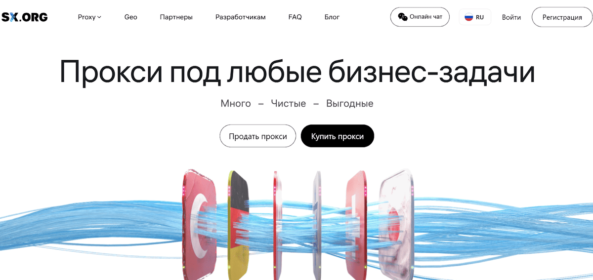 Функционал: серверные, резидентские и мобильные прокси; поддержка протоколов HTTP(S) и SOCKS5; управление через личный кабинет, где можно фильтровать прокси по стране и типу; API для автоматизации; линейка полезных инструментов на сайте.