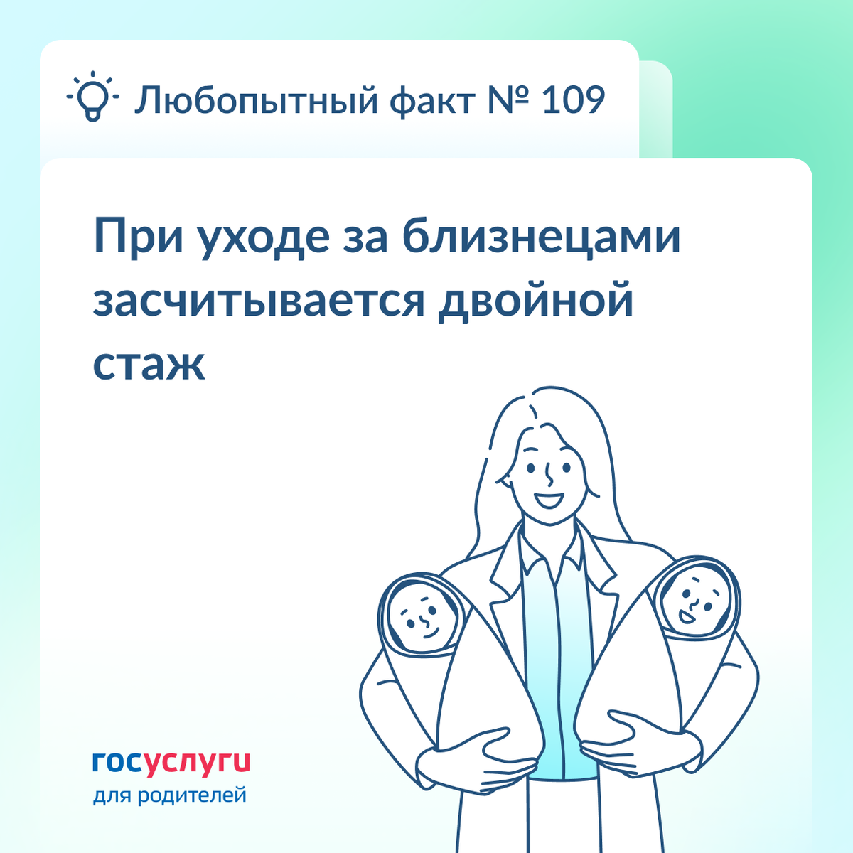 С 2026 года нормами Федерального закона № 443-ФЗ при рождении двух и более детей в случае многоплодной беременности периоды ухода за каждым ребенком до 1,5 лет суммируются. Если в семье родились сразу двое детей, тому родителю, который за ними ухаживал, будет засчитано 3 года стажа. То есть мама была в отпуске по уходу за близнецами до их 1,5 лет, а в стаж ей засчитается 3 года. 🔸 Стаж за уход до 1,5 лет — за всех детей