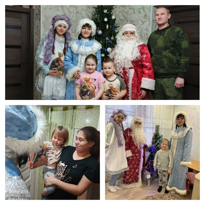 В преддверии самого сказочного и любимого всеми детьми и взрослыми праздника, Дед Мороз, Снегурочка, Снеговик, поздравили детей участников СВО с наступающим Новым годом и Рождеством! И.о. главы Администрации Малокирсановского с.п. вручила девчонкам и мальчишкам сладкие подарки. Все дети были приятно удивлены, читали стихи, пели песни.