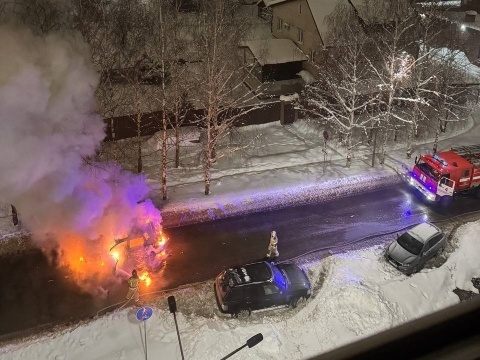 Ранним утром 14 января в микрорайоне Новая Кузнечиха в Нижнем Новгороде на дороге загорелся и полностью выгорел легковой автомобиль.