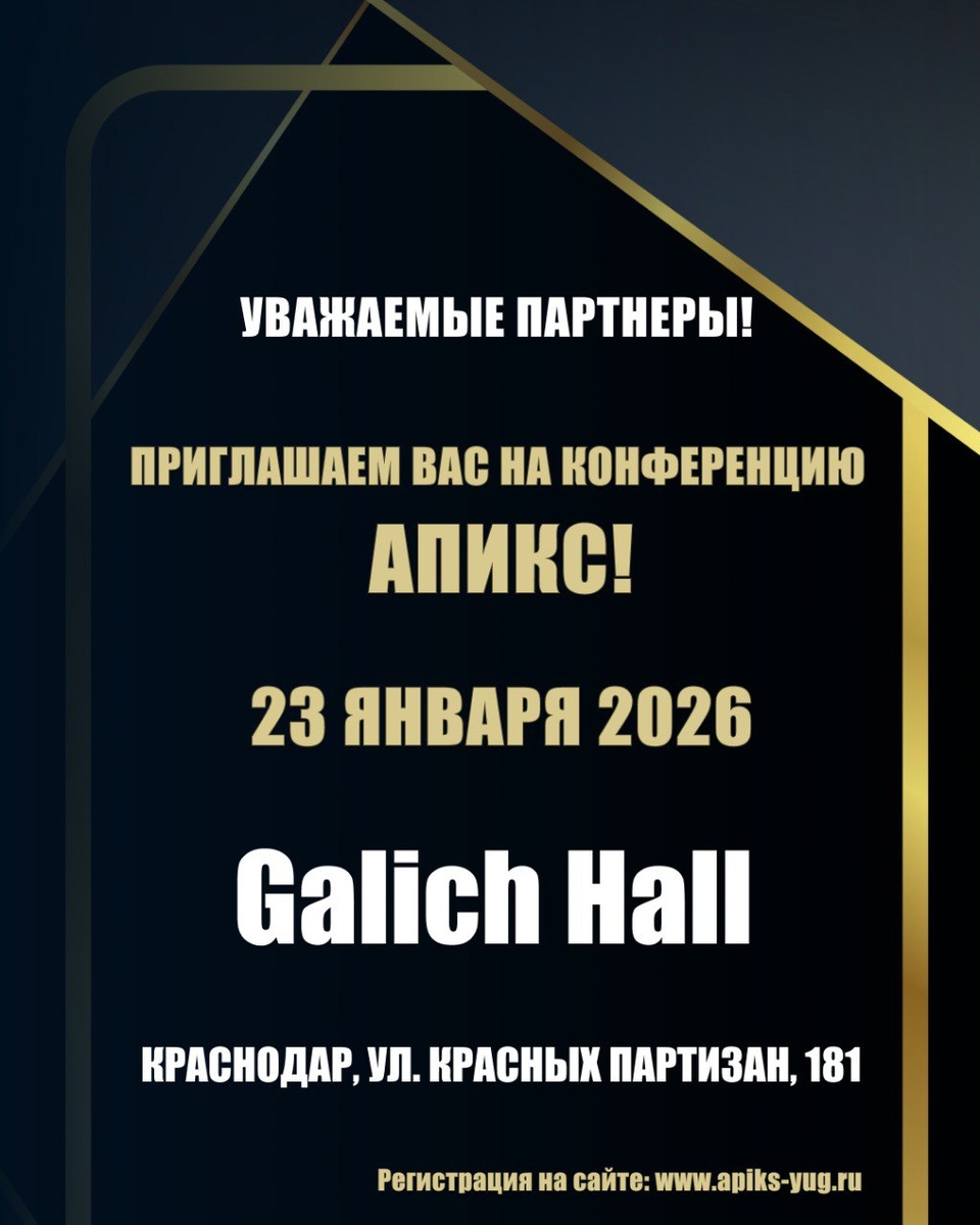 ! 📅 23 января 2026 г. | 🕒 12:00 📍 Краснодар, Galich Hall 👉 Регистрация на мероприятие по ссылке: clck.ru/3QoAD7 Ждем вас! 💙 #АпиксКонференция