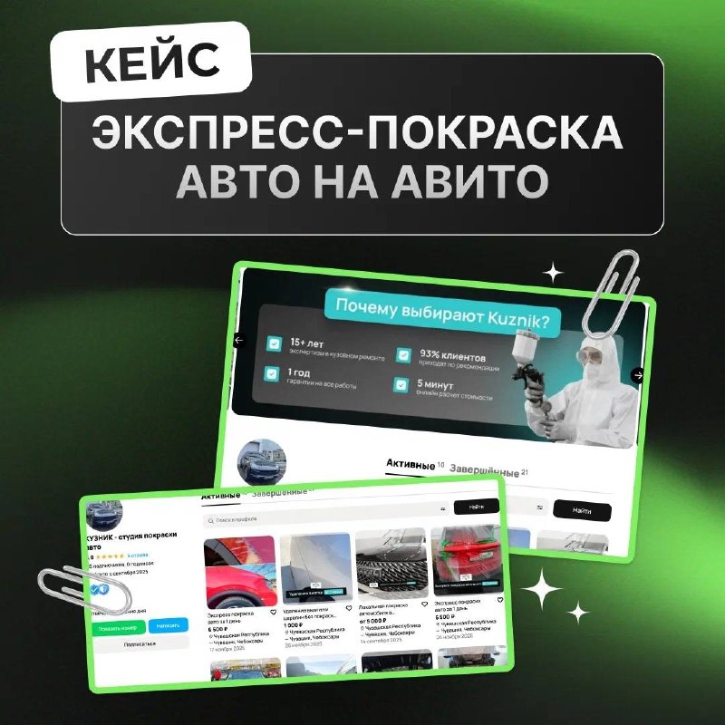 Название компании: КУЗНИК - студия покраски авто Ниша: Экспресс-покраска авто, антикор, антихром и удаление вмятин PDR Гео: Чебоксары Особенности: ценник на услуги выше среднего, средний чек 40 000р, желаемая стоимость лида 2000р Определение ЦА и упаковка объявлений Целевая аудитория Владельцы легковых авто, которые ценят свое время и нервы, готовы платить выше рынка за высокий сервис и качественное обслуживание. УТП - Экспресс-покраска за 1 день - Скорость и ответственность: 20% стоимости за задержку авто более минуты - Услуга обратного такси по городу - Мастера, обученные в Японии с опытом более 15 лет - Фотоотчет 24/7 Аналитика спроса и предложения Анализировали все целевые и околоцелевые запросы. Для примера: Покраска авто 384 запроса в месяц / 191 объявление конкурентов / 10 VAS Антикоррозийная обработка 208 запросов в месяц / 37 объявлений конкурентов / 2 VAS Антихром 40 запросов в месяц / 17 объявлений конкурентов / 1 VAS Уникализация объявлений Уникализировали обь