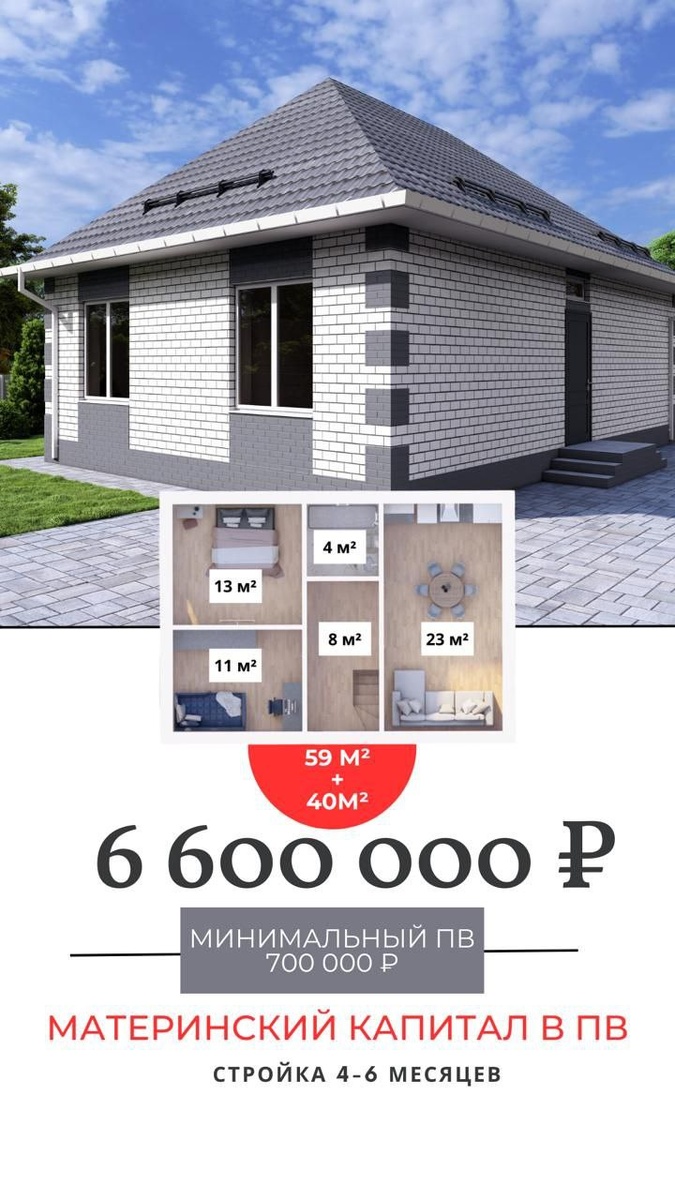 ❗️ 🚩ст.Нововеличковская 🏡Дом : 59+40 м² 🌎Участок : 5,4 сотки ✅Мин ПВ: 700 000₽ 🧑🧑🧒Материнский капитал в первоначальный взнос 💰Цена: 6 600 000₽ ❗️Дома в стройку с нуля- срок 4-6 месяцев❗️ 8 918 311 92 88 Татьяна 8 938 888 11 41 Владимир #недвижимостькраснодара #домавкраснодаре