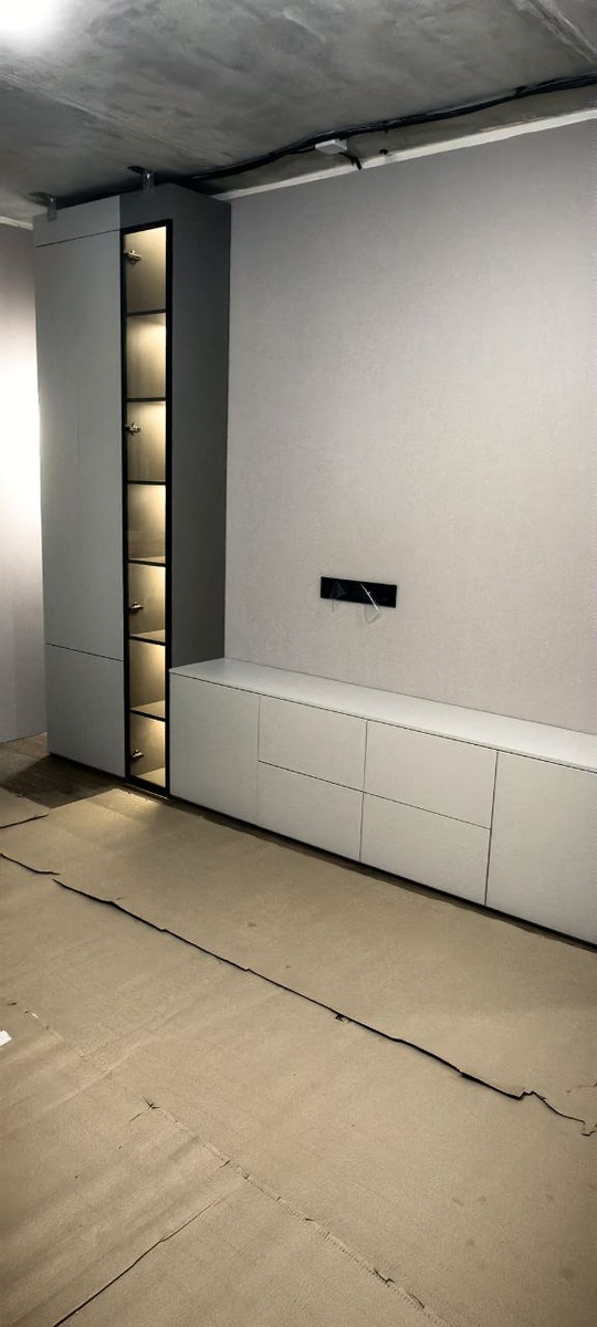 Стенка под тв зону. С подсветкой. Тонкий алюминий профиль с тонированным стеклом. Фасад мдф В пвх плёнке