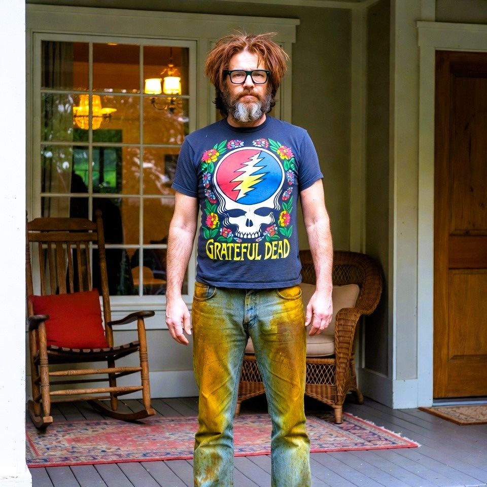 Дин вылез из машины и увидел на крыльце босого мужчину. У него были длинные, всклокоченные каштановые волосы, почти седая борода и толстые очки в пластиковой оправе. На нем была футболка с изображением «Grateful Dead» и потертые джинсы, испачканные желто-зелено-коричневыми пятнами, о происхождении которых Дин предпочел не думать.