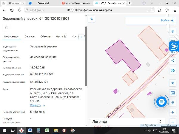 м. с кадастровым номером 64:30:120101:801, с разрешенным использованием "для ведения личного подсобного хозяйства (приусадебный земельный участок), расположенный по адресу: Российская Федерация, Саратовская область, муниципальный район Ртищевский, с.п. Салтыковское, с. Елань, ул. Гоголева, з/у 91а Канал: Госземля Саратовская область Область: обл Саратовская Район: м.р-н Ртищевский Населенный пункт: с.п. Салтыковское, с Елань, ул Гоголева, з/у 91а Локация: Смотреть на карте ВРИ: Для ведения личного подсобного хозяйства (приусадебный земельный участок) Кадастровый номер: 64:30:120101:801 Кадастровая стоимость: - Вид сделки: Аренда Площадь: 5450 м² Начальная цена: 13700.00 руб. Дата завершения: 25.01.2026 Подробнее: ГИС ТОРГИ #госземля #земляотгосударства #земля #земельныйучасток #земельныеторги #торги #аукцион #арендаземли #аренда #саратовскаяобласть