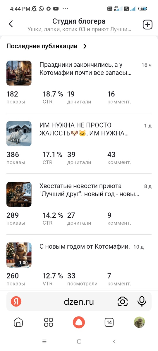 В поддержку дзена уже не пишу, потому что там явно, отвечают боты и говорят, что все окей, вы не интересны читателям, мы вас не покажем, нам фиолетово на ваших котиков, пусть голодают! Они, конечно, не пишут фиолетово и голодают, но так выходит, если показов они практически не дают, ни котам, ни большому приюту. Хотя у нас 14274 подписчика, но они, явно, о нас забыли, не понятно только зачем они нас подписаны, чтобы наблюдать наш котоголод? Хотя некоторые читатели пишут мне лично и жалуются, что не могут найти нас в инете, хотя на нас подписаны, нас им не показывают практически совсем и найти нас можно только или по ссылке или через поиск!