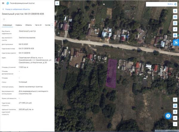 Название: земельный участок с кадастровым номером 64:31:390818:408, площадью 1023 кв.м., категория земель: земли населенных пунктов, вид