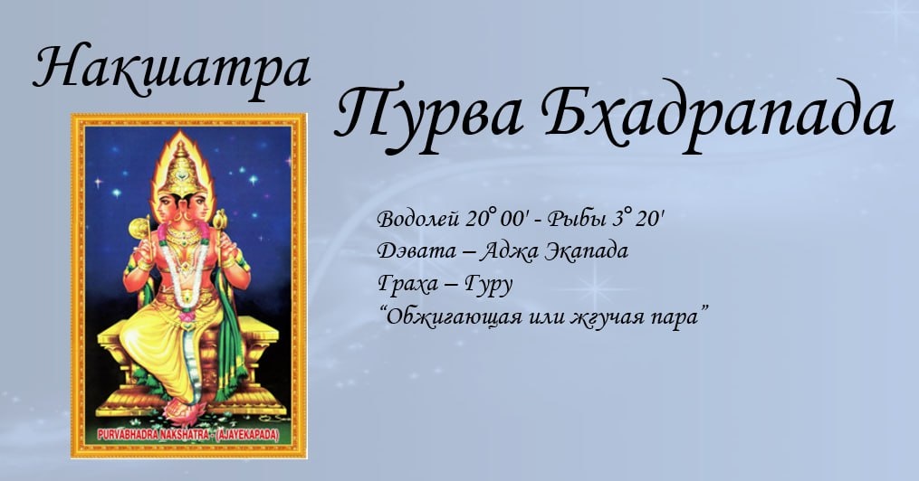 Медленно, но верно мы продвигаемся по Накшатра Мандале, переходим к Пурва Бхадрападе