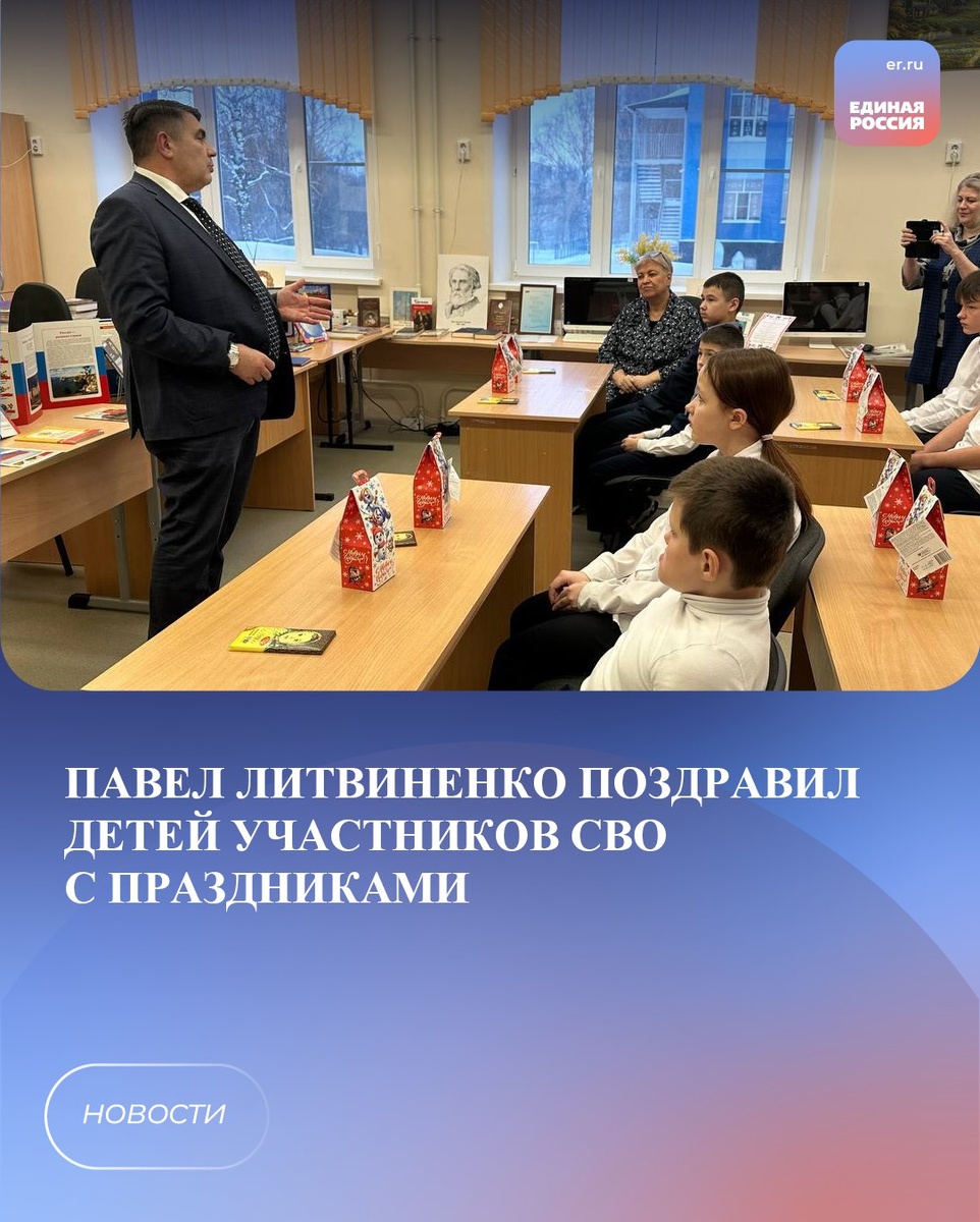 Депутат Чебоксарского горсобрания Павел Литвиненко поздравил детей участников СВО из СОШ №10 со Старым Новым годом