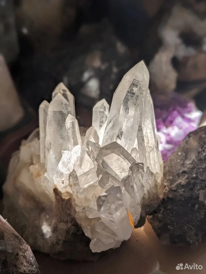 Иногда достаточно повернуть камень на несколько градусов — и он отвечает вспышкой, будто в нём спрятана маленькая погода. У этой друзы горного хрусталя это особенно заметно: на студийных фото она молочно-белая, мягкая, «тёплая» по тону, а на снимке с подсветкой кристаллы становятся прозрачнее, проявляются внутренние линии роста и тонкие отражения. Друза — это скопление кристаллов, выросших на общей породной основе внутри полости (жильной трещины или пустоты). Кварц (SiO₂) там «достраивал» себя из растворов, слой за слоем, пока пространство позволяло. На фотографиях хорошо читаются три вещи: Эта комбинация делает образец интерьерным: он выглядит живым и меняется от освещения, а не «застывает» одной картинкой. Кристалл — это не просто «красивая форма», а регулярная решётка. В кристаллографии всё многообразие симметрий описывают 32 кристаллографических класса и 230 пространственных групп — это как алфавит, которым природа «пишет» минералы. Кварц относится к тригональной системе (гексагон