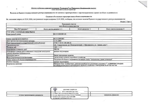 Название: Свердловская область, Камышловский район, село Шилкинское, улица Ленина, дом 5, из категории земель – земли населенных пунктов