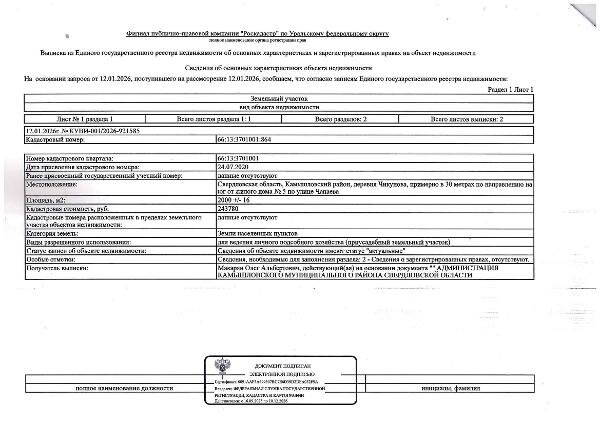 Чапаева, из категории земель – земли населенных пунктов, общей площадью 2000 кв.м., с кадастровым номером 66:13:3701001:864, разрешенный вид использования: для ведения личного подсобного хозяйства (приусадебный земельный участок). Канал: Госземля Свердловская область Область: обл Свердловская Район: м.р-н Камышловский Населенный пункт: с.п. Зареченское, д Чикунова примерно в 30 метрах по направлению на юг от жилого дома № 5 по улице Чапаева Локация: Смотреть на карте ВРИ: Для ведения личного подсобного хозяйства (приусадебный земельный участок) Кадастровый номер: 66:13:3701001:864 Кадастровая стоимость: - Вид сделки: Аренда Площадь: 2000 м² Начальная цена: - руб. Дата завершения: 13.02.2026 Подробнее: ГИС ТОРГИ #госземля #земляотгосударства #земля #земельныйучасток #земельныеторги #торги #аукцион #арендаземли #аренда #свердловскаяобласть