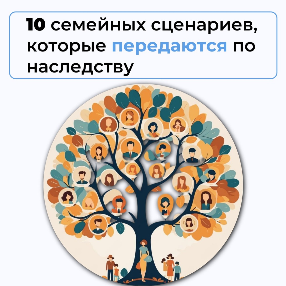 ? 👥 Семейная история - это не только про даты и фотографии. Это ещё и набор привычных реакций, ролей и сценариев, которые часто передаются из поколения в поколение. Мы можем не осознавать, что живём не свою жизнь, а продолжаем путь, который был задан до нас - потому что «так принято в нашей семье», «иначе нельзя» или «я не хочу быть, как мама, но всё повторяется». Такие сценарии часто активируются в похожих ситуациях: когда рождаются дети, когда в отношениях наступает кризис, когда приходит усталость. И именно они влияют на то, как мы ссоримся, миримся, любим, просим о помощи и защищаем границы. Разобраться в этих повторяющихся шаблонах - важная часть семейной терапии. Иногда одно осознание уже помогает сделать шаг в сторону своей жизни, а не чужой судьбы. Вот 🔟 распространённых сценариев, которые часто встречаются на сессиях: 1. «Моя мама терпела - и я терплю» Партнёр не уважает, игнорирует чувства, но «так жили мои родители», и расстаться кажется невозможным. 2. «Мужчины в наш