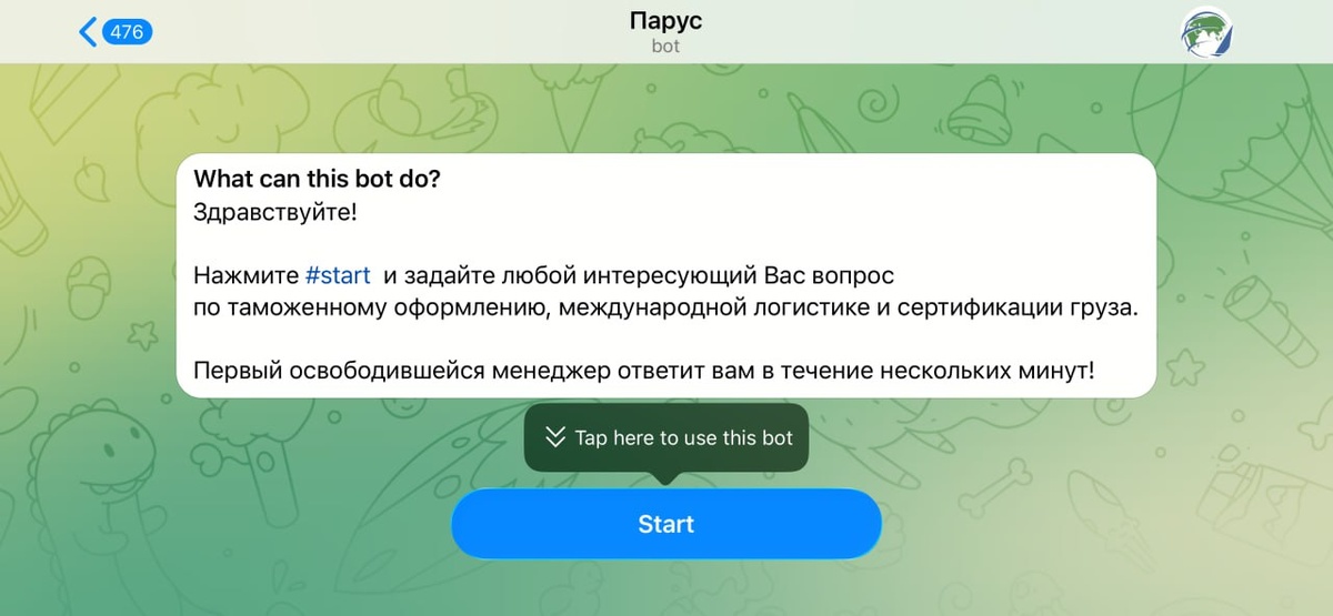 Для удобства клиентов мы используем Telegram-бот @Parus_manager_bot для ответов на вопросы и расчёта заявок. 🔹 Через бот можно: • задать вопросы по международным перевозкам, таможенному оформлению и сертификации; • направить заявку на расчёт стоимости и сроков доставки. Все обращения рассматриваются специалистами компании с учётом специфики груза и маршрута. Мы предоставляем предметные ответы и практические решения по каждому запросу. ‼️ Задать вопрос или направить заявку можно здесь: @Parus_manager_bot