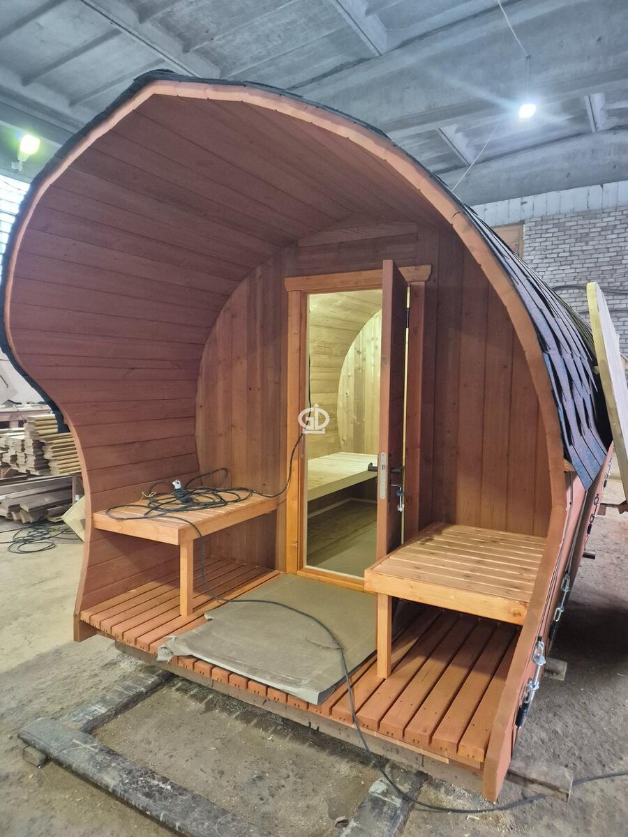 В цеху снова стучат молотки и визжат пилы после новогоднего затишья. Красота! Сейчас заканчиваем сборку вот такой бани «София» – совсем скоро покажем финишный результат.