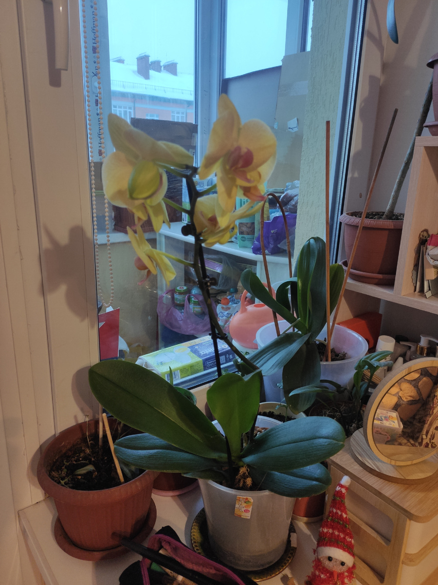 Мама дарила мне жёлтую орхидею, но летом муж ее или залил, или не полил, приезжая с дачи, и она
