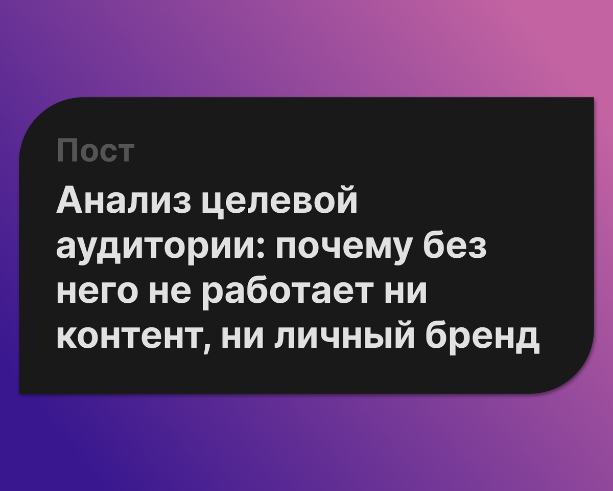 Большинство проблем с блогом, контентом и продвижением начинаются не с плохих текстов. Они начинаются раньше — с отсутствия анализа целевой аудитории. Автор пишет искренне, регулярно, иногда даже полезно, но аудитория не растёт, подписки не закрепляются, а личный бренд не формируется. Причина проста: контент создаётся «в вакууме». Анализ целевой аудитории — это не описание пола, возраста и города проживания. Эти данные почти ничего не дают для контента. Настоящий анализ ЦА отвечает на другие вопросы: – в какой точке сейчас находится человек