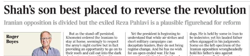 Сегодня The Times, в лице Роджера Бойеса, прямо заявила: сын шаха – лучший кандидат для «отмены революции». Выходит, британцы теперь решают, кто лучше подходит Ирану? Не иранцы же сами! Сам Бойес, кстати, в своей статье вспоминает и преступления режима отца Пехлеви, и нелепость самого Резы. Но это не мешает ему навязывать его иранцам. Его аргумент: «Пусть Пехлеви и сомнительный кандидат, но конституция лучше, чем фашизм теократов. Дайте ему шанс!» И вот главное: британцы начали продвигать Пехлеви еще прошлым летом (вспомните встречу с Борисом Джонсоном). То есть ДО нынешних протестов! Это не совпадение. Это явно указывает на организаторов бунта. Подписывайся