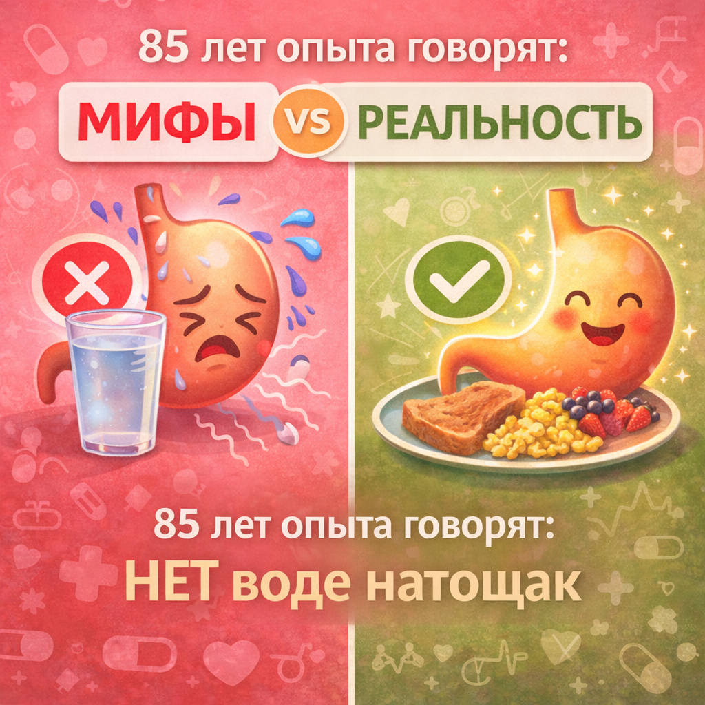 Всю жизнь пила воду натощак — пока эндокринолог не объяснил, почему это ошибка. Изменила привычку — и организм ожил! Я всегда считала себя человеком, который следит за здоровьем. Читала статьи, смотрела блогеров, следовала трендам. И, конечно, каждое утро начинала со стакана воды. Все же говорят: «Вода натощак запускает организм, очищает, бодрит!» Я пила воду сразу после пробуждения. Иногда тёплую, иногда с лимоном. Считала, что делаю всё правильно. Пока не попала на приём к эндокринологу Владимиру Ильичу. Ему 85 лет, он до сих пор ведёт практику, и к нему очередь на месяцы вперёд. Владимир Ильич объяснил мне то, о чём молчат все «гуру здоровья». Когда мы просыпаемся, наш организм ещё спит. Желудок не вырабатывает достаточно соляной кислоты. Ферменты не активны. Пищеварительная система только «загружается». И тут мы выливаем в неё холодный (или даже тёплый) стакан воды. Что происходит? Утром концентрация соляной кислоты в желудке минимальна. Вода разбавляет её ещё сильнее. Пищеварение