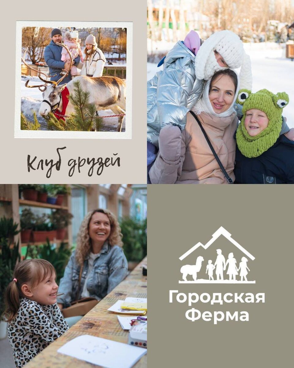 »! С 13 января Городская Ферама запускает новое пространство для семей, где можно регулярно отдыхать на природе с пользой и смыслом. Сразу оговорюсь, я отправила заявку, но пока - тишина. Обещали опубликовать афишу и подробную инструкцию в ближайшее время. Отправляем заявки и ждемс. По единому клубному билету вас ждёт: ✅ До 6 уникальных эко-занятий в день ✅ Безлимитное общение с животными: альпака, овечки, северный олень, кролики и другие — можно кормить и обнимать! ✅ Игры на свежем воздухе ✅ Лектории, спектакли и творческие мастер-классы ✅ Знания о народных традициях, растениеводстве и фермерстве ✅ Сообщество единомышленников 🔥🔥С 13 по 31 января — бесплатный пробный период! Количество мест ограничено, нужна регистрация. Как попасть в «Клуб друзей»? 👉Зарегистрироваться в чат-боте в Телеграм https://t.me/fermaclubbot 👉Следовать инструкции внутри бота.