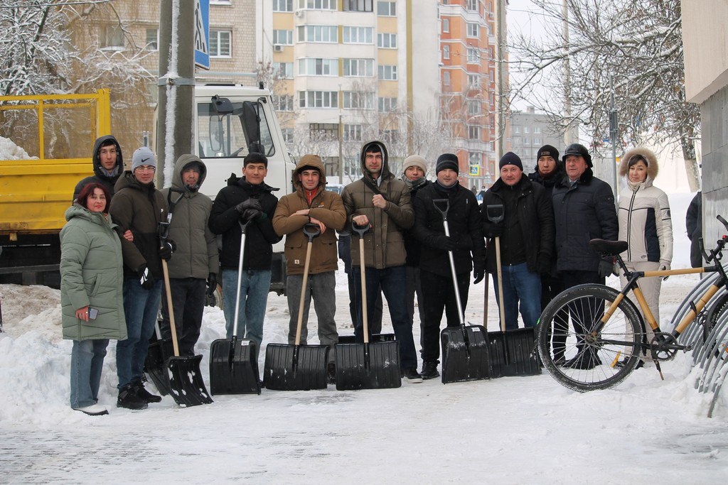 ❄️ В расчистке университетской территории от снега участвуют иностранные студенты (общежитие № 1) и сотрудники ГГУ.