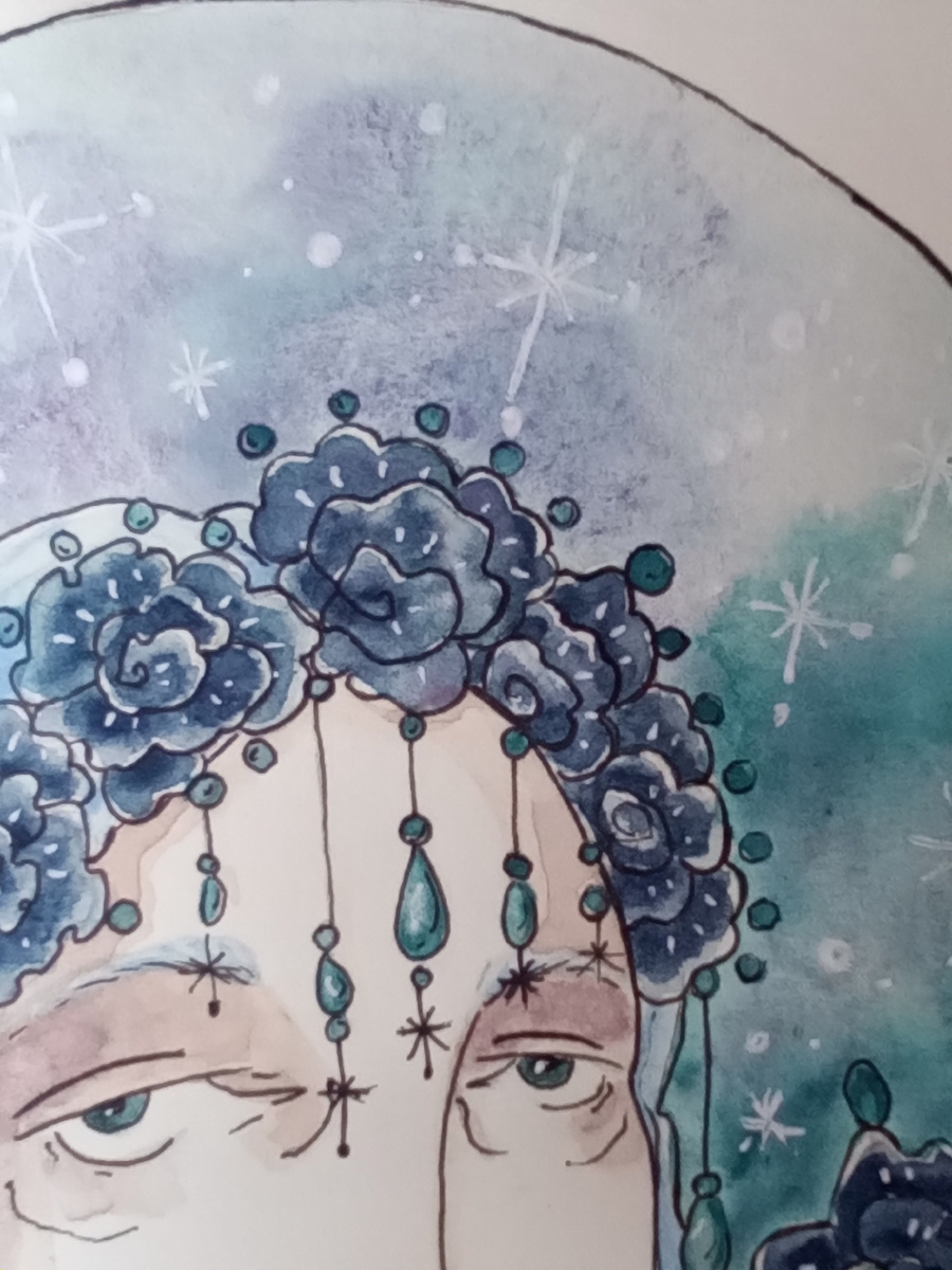 Образ из основного скетчбука, навеянный цветением роз в декабре. Растения стоят, покрытые первым снегом. Но похоже, что они уже не цветут, а просто спят и ждут весну, чтобы сбросить со своих лепестков холодные талые снежинки и продолжить свою жизнь уже под соднцем.
