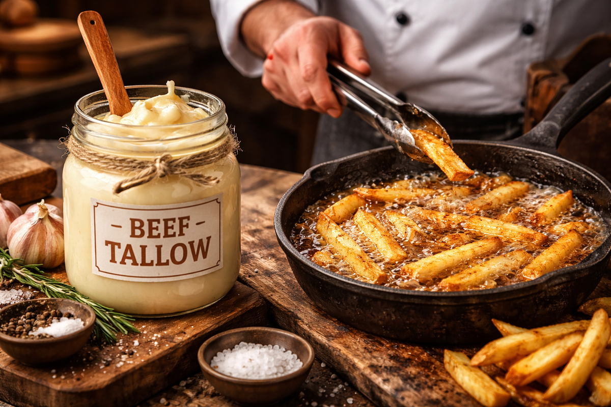 ΠΎΠ΄ΠΈΡ Ρ Π³ΠΎΠ²ΡΠΆΡΠΈΠΌ ΠΆΠΈΡΠΎΠΌ (beef tallow) β ΠΏΡΠΎΠ΄ΡΠΊΡΠΎΠΌ, ΠΊΠΎΡΠΎΡΡΠΉ ΠΏΠΎΡΡΠΈ ΠΏΠΎΠ»Π²Π΅ΠΊΠ° Π±ΡΠ» ΠΏΠ΅ΡΡΠΎΠ½ΠΎΠΉ Π½ΠΎΠ½ Π³ΡΠ°ΡΠ° Π² Π΄ΠΈΠ΅ΡΠΎΠ»ΠΎΠ³ΠΈΠΈ, Π° ΡΠ΅ΠΏΠ΅ΡΡ Π²Π½Π΅Π·Π°ΠΏΠ½ΠΎ ΠΎΠΊΠ°Π·Π°Π»ΡΡ Π² ΡΠ΅Π½ΡΡΠ΅ ΡΠ΅ΡΡΠΎΡΠ°Π½Π½ΡΡ