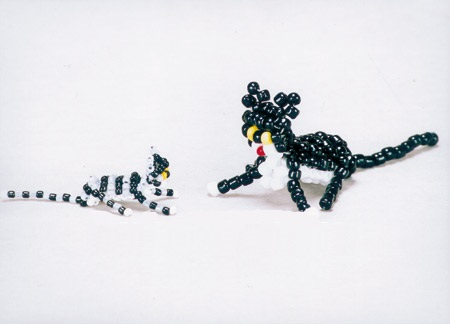 Добрейшего всем дня! Сегодня у нас опять очень простые, но симпатичные схемы котиков. Оригинал - тут. Котёнок из бисера может стать по желанию оригинальным или смешным, очаровательным и милым, как настоящее животное. Любители кошек не просто заводят себе это животное, а и собирают различную символику. Сплести такого котика будет не сложно, главное внимание и усидчивость. Для такого сувенира потребуется: Выполнять нужно будет техникой параллельное плетение бисером на леске. Важно хорошо изучить эту технику. Схема Плетение навстречу друг другу выполняем двумя концами лески. Вначале работы на леску нужно набирать бисерины 1-го и 2 –го ряда одновременно. После этого второй конец лески пропускаем через бисерины 2-го ряда идем так навстречу к первому концу. После чего в руки берем два конца лески, и все бисерины подтягиваем до упора на срединку лески. Далее продолжаем нанизывание, набирая на один конец лески все бисерины ряда. При этом вторым концом нужно идти навстречу к первому концу леск