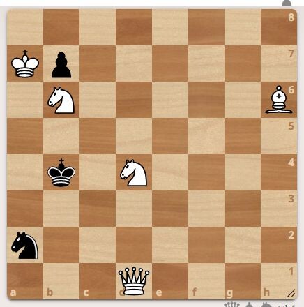 Очередная задача. У черных на защите короля только конь. У белых два коня, слон и ферзь. Автор задачи В. Кузьмичев, 2026 год. Ход белых, мат в 2 хода. Подписывайтесь и ставьте лайк. Первый верный ход смотрите в галерее.