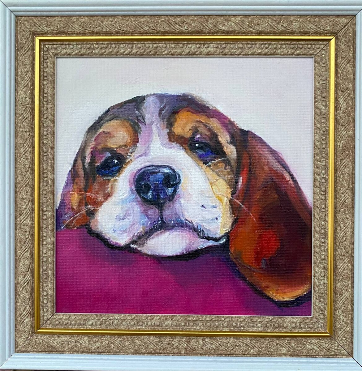 ». Холст на картоне 15/15. Типичный «несчастный» щенок бигля🐶
