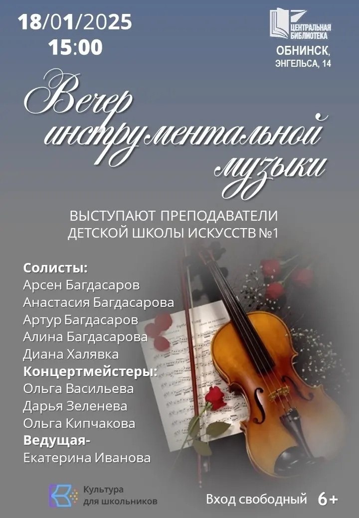 🎶18 января в 15:00 в Центральной библиотеке в Обнинске состоится вечер инструментальной музыки