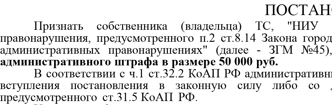 В этой серии статей я бы хотел раскрыть проблему более широко! Для начала давайте предположим, зачем подняли штраф для ЮЛ? При повышении цены парковки в ряде случаев стало выгоднее оставлять транспортное средство на парковке без оплаты и штраф в 5000 получался выгоднее, чем почасовая оплата парковки... Да, но очевидно же, что, например, при стоимости парковки 580 руб/ч за 12 часов стоянки требуется заплатить 6960 р. Не укладывается в голове только две вещи: почему 50000 р. ? Ведь штраф, к примеру, в 15000 р. также был бы эффективен и логичнее и почему подняли штраф только для юридических лиц? Получается, что не учли то, что в конечном итоге эти затраты перелягут на обычных людей, сотрудников организаций... При заработной плате, например, в 150000 руб, достаточно получить 3 штрафа и семью уже не чем кормить! Также есть и обратная сторона проблемы: теперь любой сотрудник или группа сотрудников могут парализовать работу организации с небольшими оборотами и запасами свободных сумм на счетах, просто можно нарушать по 20 раз в день и за две недели прилетит от 10000000 руб. Это огромные убытки для организаций и непосильная одномоментная сумма долга, которую нужно оплатить в течении 70 дней... А далее очень сложно переложить эти затраты на конечных сотрудников, и даже если это получится, то вернутся эти деньги через годы... Это огромный риск для организаций! Вот такая сегодня грустная и нелогичная ситуация, в следующих статьях я хочу описать нюансы работы ГКУ АМПП и судов при попытках обжалования вышеописанных штрафов.