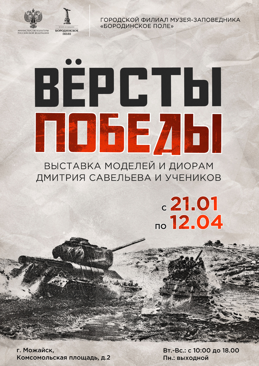 Как оживить историю? Как заставить время остановиться в самый напряженный миг подвига? Ответ дает искусство диорамы. Погрузитесь в героическое и трагическое прошлое нашей страны. Здесь, перед вашими глазами, застывшие в миниатюре истории повествуют о мужестве, стойкости и самопожертвовании советского народа в годы Великой Отечественной войны. Мы приглашаем не «просто посмотреть на выставку», а постоять на том самом плацдарме, услышать в воображении гул моторов и почувствовать, что память о великом и трагическом — это не что-то далекое, а часть нашего общего «я». «Вёрсты Победы» проводятся с 2008 года. Их создатели - кружковцы изостудии ДК «Осташево», которые занимались темой Великой Отечественной войны в течение нескольких лет. Руководитель студии - Дмитрий Борисович Савельев, художник, член Союза художников Подмосковья (МОООСХ), автор многих диорам. Выставка представляет собой уникальную коллекцию миниатюр, демонстрирующих ключевые эпизоды войны. Каждая деталь, тщательно проработанная