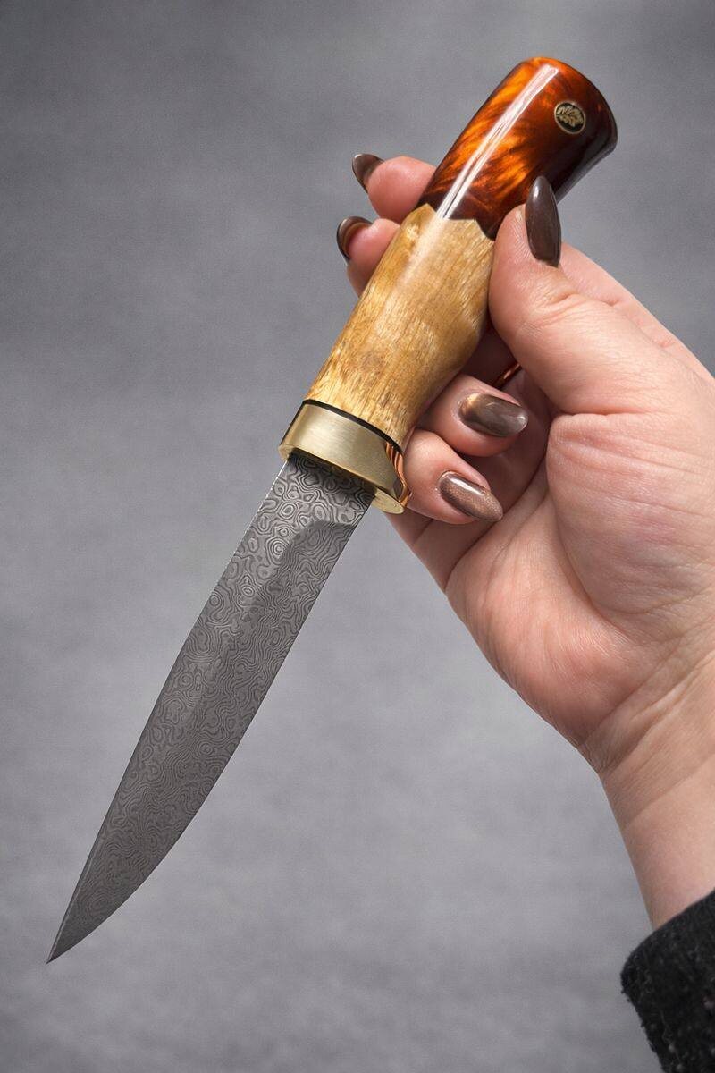 😍 Небольшой нож, созданный быть верным спутником. Мужская сдержанность и женская элегантность встретились в одном дизайне. А клинок из нержавеющего дамаска добавляет этому союзу благородную ноту. Для тех, кто ценит стиль в деталях 💖 Впереди 23 февраля и 8 марта, забирай на подарок 🎁