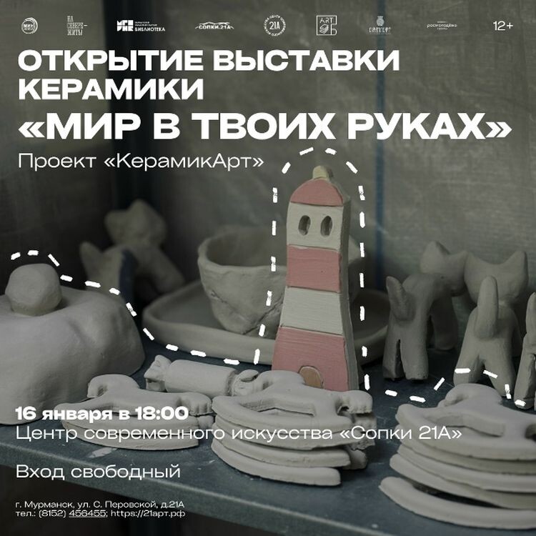 16 января в Центре современного искусства «Сопки 21А» откроется выставка «Мир в твоих руках». В экспозиции представлены изделия, созданные молодыми людьми с инвалидностью в рамках инклюзивного проекта «КерамикАрт». На протяжении трех месяцев более 30 участников осваивали гончарное ремесло на базе Арт-библиотеки. Благодаря гранту Росмолодежи начинающие мастера учились работать на гончарном круге, использовать трафареты и расписывать готовую посуду. Гости выставки увидят уникальные чашки с саамскими узорами, тарелки с северными ягодами и миниатюрные символы столицы Заполярья. Торжественное открытие состоится 16 января в 18.00. Посетить выставку можно бесплатно до 15 февраля 2026 года. Афиша: Центр современного искусства «Сопки 21А».