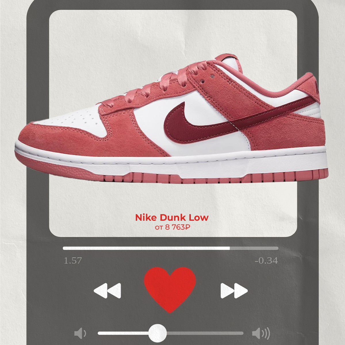 За месяц до Дня Святого Валентина надо бы глянуть, какие праздничные пары есть у Nike. Кажется, чей-то вишлист сегодня обновится… Nike Dunk Low, цена от 8 763₽* Nike Air Force 1 Low, цена от 21 923₽* Nike Cortez, цена от 6 753₽* Nike Air Force 1 Low, цена от 21 793₽* Nike Dunk Low, цена от 8 003₽* *стоимость может изменяться в зависимости от курса и размера Больше интересного на нашем сайте POIZON