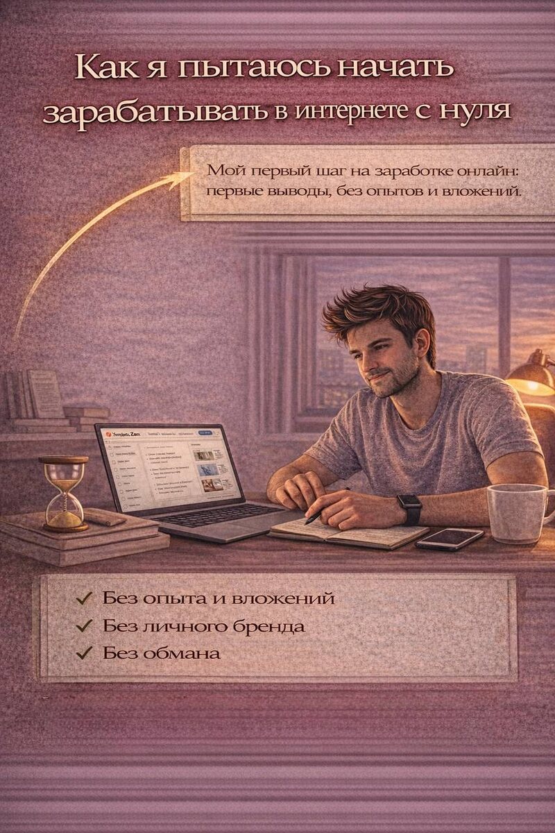 Последние месяцы я всё чаще ловил себя на мысли, что одного источника дохода недостаточно. Цены растут, стабильности всё меньше, а в интернете постоянно говорят о заработке онлайн. Я долго не верил, что обычный человек без опыта может реально зарабатывать в интернете. Но в какой-то момент решил: Либо пробую сам, либо перестаю верить слухам. В этой статье расскажу, с чего начинаю и какие выводы сделал. Главная причина простая- деньги и свобода. Я не ищу "лёгких миллионов", но хочу понять: -Можно ли начать зарабатывать онлайн без навыков, связей и стартового капитала. -Какие способы работают, а какие - пустая трата времени. -Сколько реального времени нужно. чтобы увидеть первые деньги. Я не рассчитываю на быстрые миллионы, Моя цель - разобраться, какие способы вообще работают и сколько времени они требуют. Первое что стало очевидно - большинство "схем" в интернете не работаю. Обещания быстрого заработка чаще всего заканчиваются: -Курсами сомнительного качества; -Пустыми чатами с разгово
