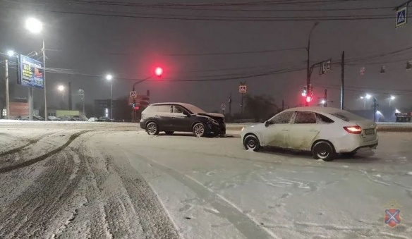 По информации ГУ МВД России по Волгоградской области, столкновение произошло около 20.10 напротив дома № 17 по улице Домостроителей. Вечером 13 января в Дзержинском районе зафиксировано дорожно-транспортное происшествие, причиной которого стало нарушение правил проезда перекрестка. Известно, что водитель автомобиля «Лада Гранта» выехал на перекресток на запрещающий сигнал светофора, где и произошло столкновение с автомобилем «Ниссан». В результате инцидента водитель «Лады» получил травмы и был доставлен в медицинское учреждение. Илья Николаев. Фото: ГУ МВД России по Волгоградской области.