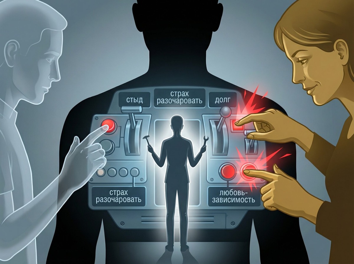 С родителями: Они знают все ваши кнопки. Они их устанавливали. Могут включить вину одной фразой: «После всего, что я для тебя сделала...»