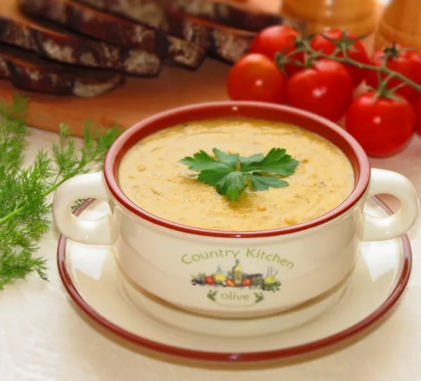 "Мерджимек чорбасы". Вкус у красной чечевицы деликатный и мягкий. Содержит красная чечевица драгоценный растительный белок, клетчатку, минимум жиров, омега-3 и омега-6 жирные кислоты, витамины группы В, фолиевую кислоту, фосфор, железо, магний и кальций, что особенно необходимо в пост.