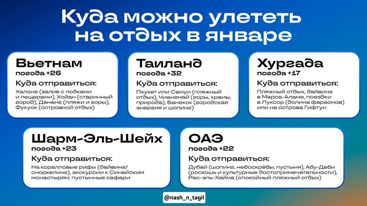 Тагильчане, вы как — сильно замёрзли? Пора подумать о местах, где можно погреться на солнышке
