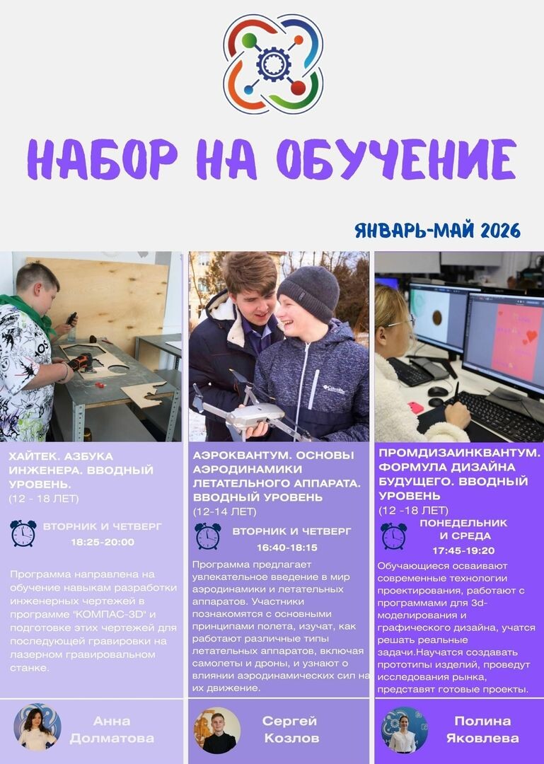 🎨 Детский технопарк «Кванториум» в Великих Луках продолжает набор на бесплатное обучение с января по май. 📅 Занятия проходят дважды в неделю по 2 часа, доступны четыре направления: Промдизайнквантум, Хайтек-цех, IT-квантум и Аэроквантум. ⚠️ Количество мест ограничено, приём ведётся в порядке подачи заявок через онлайн-форму. После подачи администратор свяжется по указанному телефону. 👉ВЛуки.ру