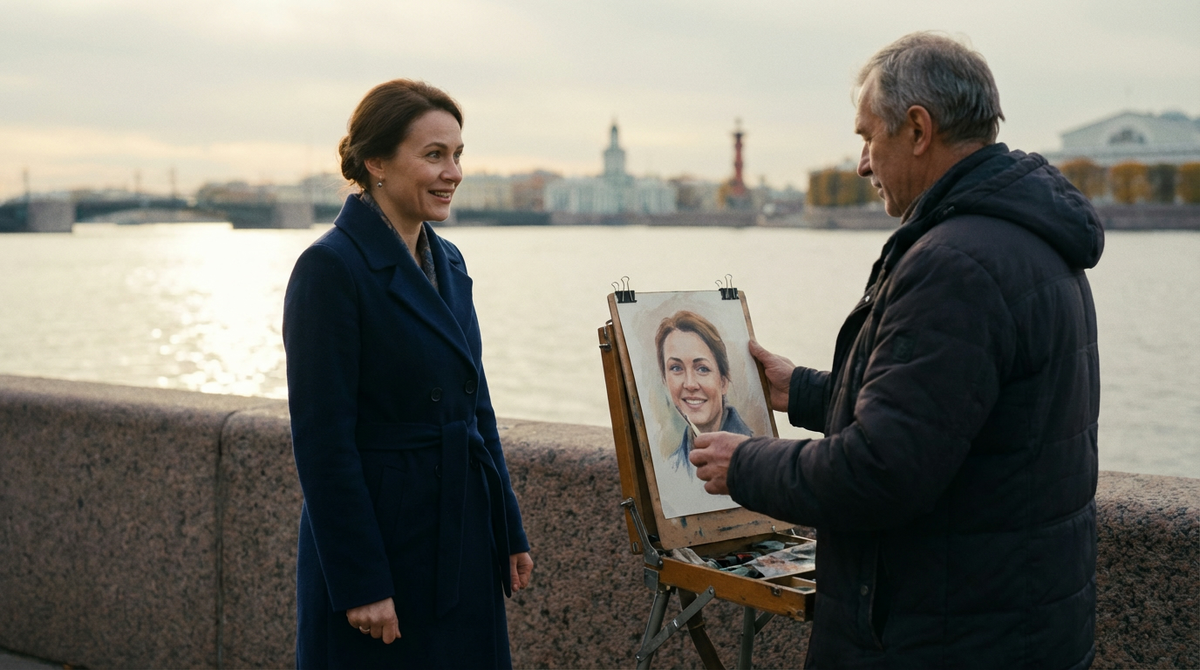 На портрете была она. Бежевое пальто, шарф, знакомый силуэт. Но лицо... Губы чуть приподняты. В глазах – что-то похожее на надежду. Она выглядела моложе. Или нет, не моложе – живее.
