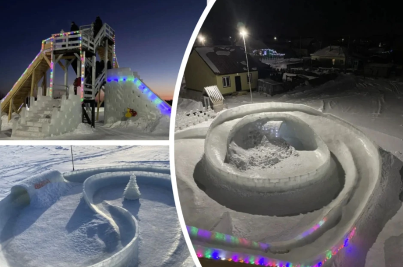 В Сибири мужчина каждую зиму создаёт вокруг своего дома развлечения для детей. Но вот то, что нравится детям, может обернуться крупным штрафом. В Новосибирской области 41-летний многодетный отец Антон Островерхов превратил свой огород в ледовый городок с горками и стал звездой соцсетей: видео шестиметровой горки с виражами набрало сотни тысяч просмотров, сообщает КП-Новосибирск. Сибиряк признается, что такой славы совсем не ожидал. Сначала мужчина строил горки своим детям, затем для местных ребятишек – горку возле дома. А сейчас – выкупил участок через дорогу и сразу начал строить несколько горок, за сезон их посещают до 2 тысяч детей и взрослых. Строит горки каждый сезон 20 человек. В декабре Антон вместе со своей командой заготовил и привез 50 тонн льда с соседнего озера: из этого льда возвели три горки высотой в 3 метра, 4,5 метра и 6 метров. Всего на стройку ушло 6 тысяч кубометров льда. Вход на горку платный, по словам создателей, им удалось отбить затраты на строительство в новог