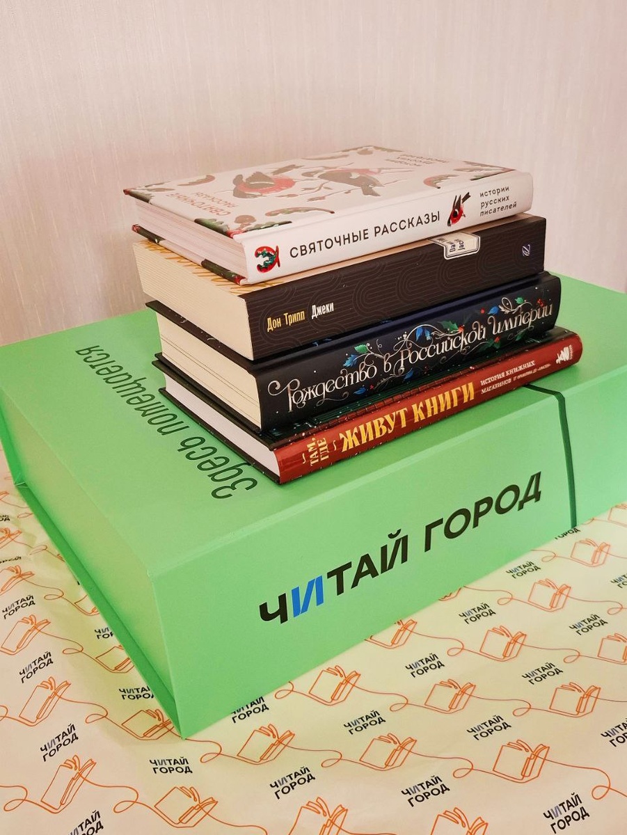 Внутри четыре книги, каждая со своим настроением: 📖 Святочные рассказы. Истории русских писателей Классический сборник рождественских историй от Шмелёва, Достоевского, Лескова, Куприна и других мастеров, где непременно есть чудо, раскаяние, доброта и тихий рождественский свет. 📖 Дон Трипп. Джеки Роман о Жаклин Кеннеди: не глянец и не сплетни, а попытка заглянуть внутрь легенды — в её боль утрат, силу, сложный брак и путь к себе после трагедии. 📖 Эван Фрисс. Там, где живут книги. История книжных магазинов от Франклина до “Амазон” Нон-фикшн о книжных магазинах как о живых местах — от первых лавок Бенджамина Франклина до сетевых гигантов, о профессии продавца книг и о том, как эти пространства меняли города и читателей. 📖 Рождество в Российской империи (сборник) Зимний сборник исторических детективов: расследования, графы и бароны, странные дела на фоне снегов и рождественских огней — идеальный вариант, когда хочется и атмосферы, и сюжета с интригой. А кроме книг — приятные мелоч
