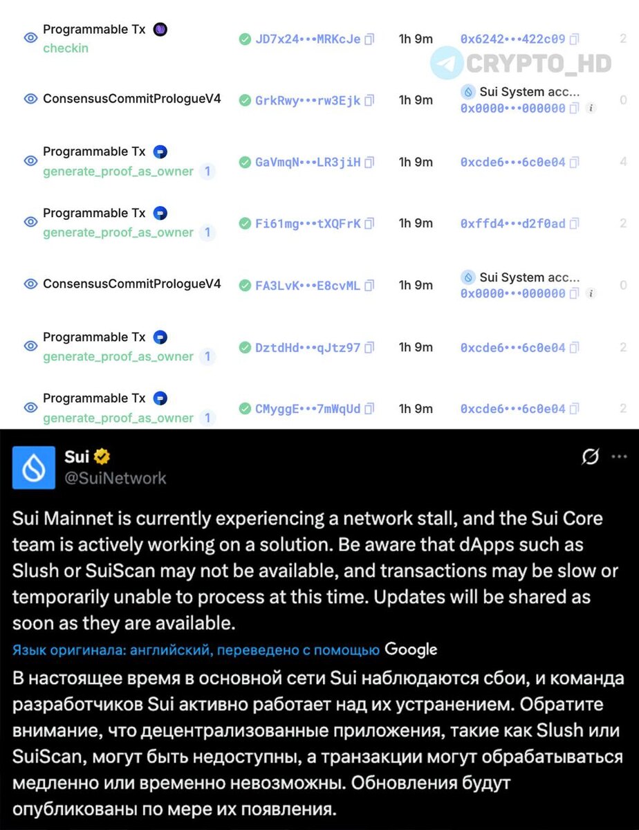 ❌ #SUI В сети Sui произошел сбой – новые блоки не производятся более 1 часа (suiscan)