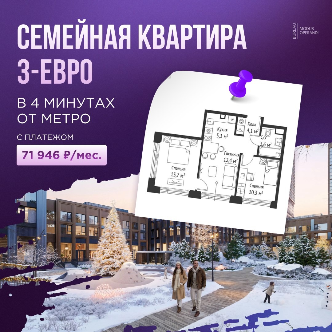 ₽ Отличный формат 3-евро 60 м² в новом деловом кластере на западе Москвы. 😄Стоимость — 24,5 млн ₽ 😄Платёж по семейной ипотеке — 71 946 ₽/мес. 😄Сдача — III квартал 2028 года Перспективы роста стоимости⤵️ 1️⃣ Рядом строится новая станция метро — 4 минуты пешком. Плюс здесь формируется деловой кластер с ведущими вузами страны — это означает стабильный спрос на аренду и покупку. 2️⃣ Инфраструктура внутри. Школа, детский сад, фитнес-клуб с бассейном, медцентр, магазины. Всё для жизни — на территории. Покупая сейчас за 24,5 млн ₽, вы фиксируете цену на 3 года вперёд. К моменту сдачи рыночная цена аналогов будет около 34 млн ₽. Разница 9,5 млн ₽ — это ваш потенциальный доход. Чтобы узнать подробнее об этой квартире или подобрать альтернативу — пишите мне. TELEGRAM МАХ